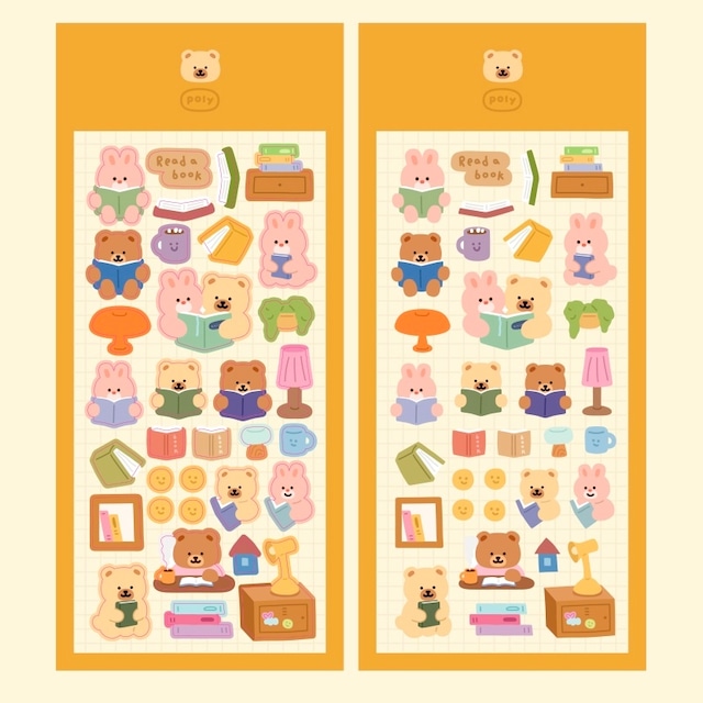 【polybear】シール 토끼와 책읽기