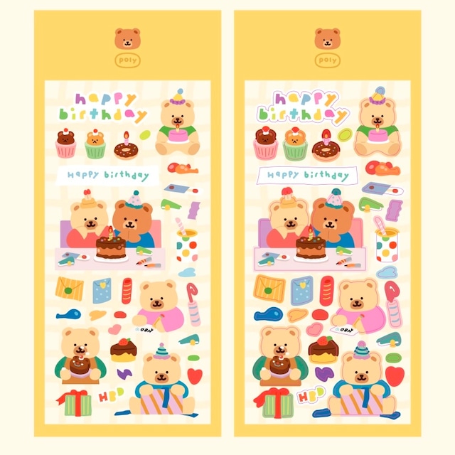 【poly bear】シール 해피벌스데이 *1枚入り *実際の色とモニターの色、違いが出る場合があります サイズ : 70×150mm 素材:シール(マット) 原産国:韓国