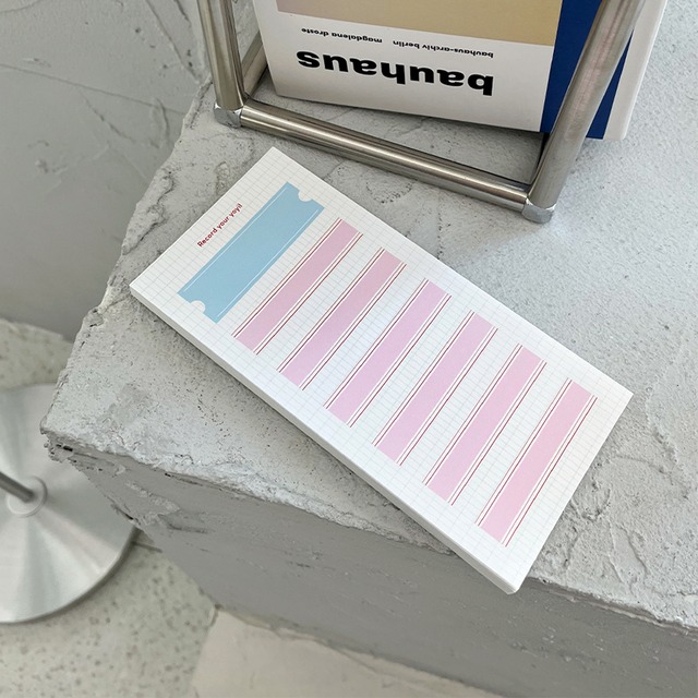 【YOYIL STUDIO】メモ帳 record line memopad 80×170mmの少し大きめのメモ帳です *実際の色とモニターの色、違いが出る場合があります サイズ : 80×170mm 素材:模造紙80g(約100枚入り) 原産国:韓国