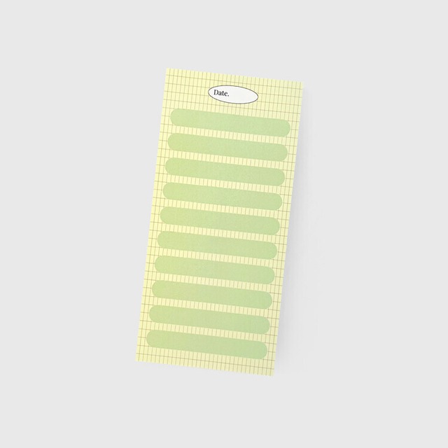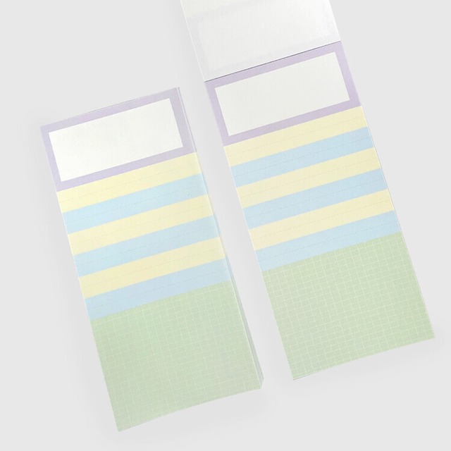 【YOYIL STUDIO】メモ帳 yellow green stripe memopad 80×170mmの少し大きめのメモ帳です *実際の色とモニターの色、違いが出る場合があります サイズ : 80×170mm 素材:模造紙80g(約100枚入り) 原産国:韓国