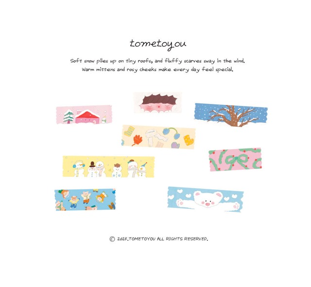 【tometoyou】マスキングテープ 겨울 柄が連続して描かれたマスキングテープです *実際の色とモニターの色、違いが出る場合があります サイズ : 幅1.5cm 長さ 10m 原産国:韓国