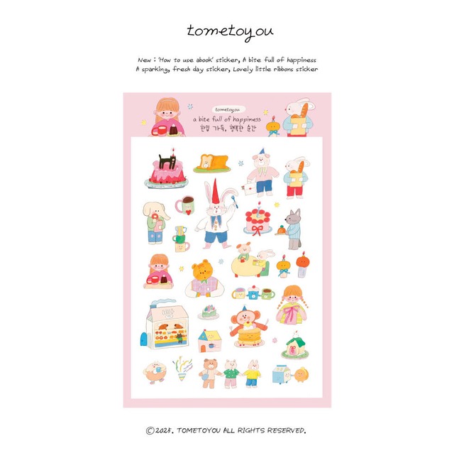 【tometoyou】シール 한입 가득, 행복한 순간 *1枚入り 紙素材のシールです:) *実際の色とモニターの色、違いが出る場合があります サイズ : 100×150mm 素材:模造紙 / シール 原産国:韓国