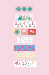 7つの柄と3匹のキャラクターが連続して描かれたマスキングテープです