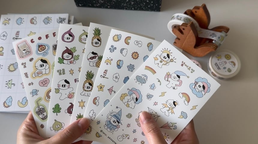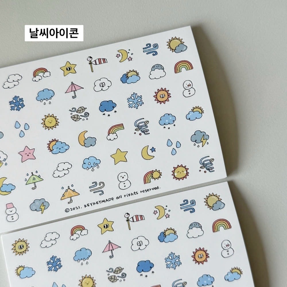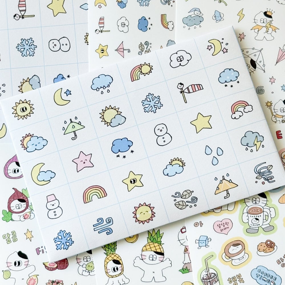 【KEYKEYMADE】新作シール5枚セット(날씨요정 / 날씨아이콘 / 파인애플 / 무화과 / 커피타임 )