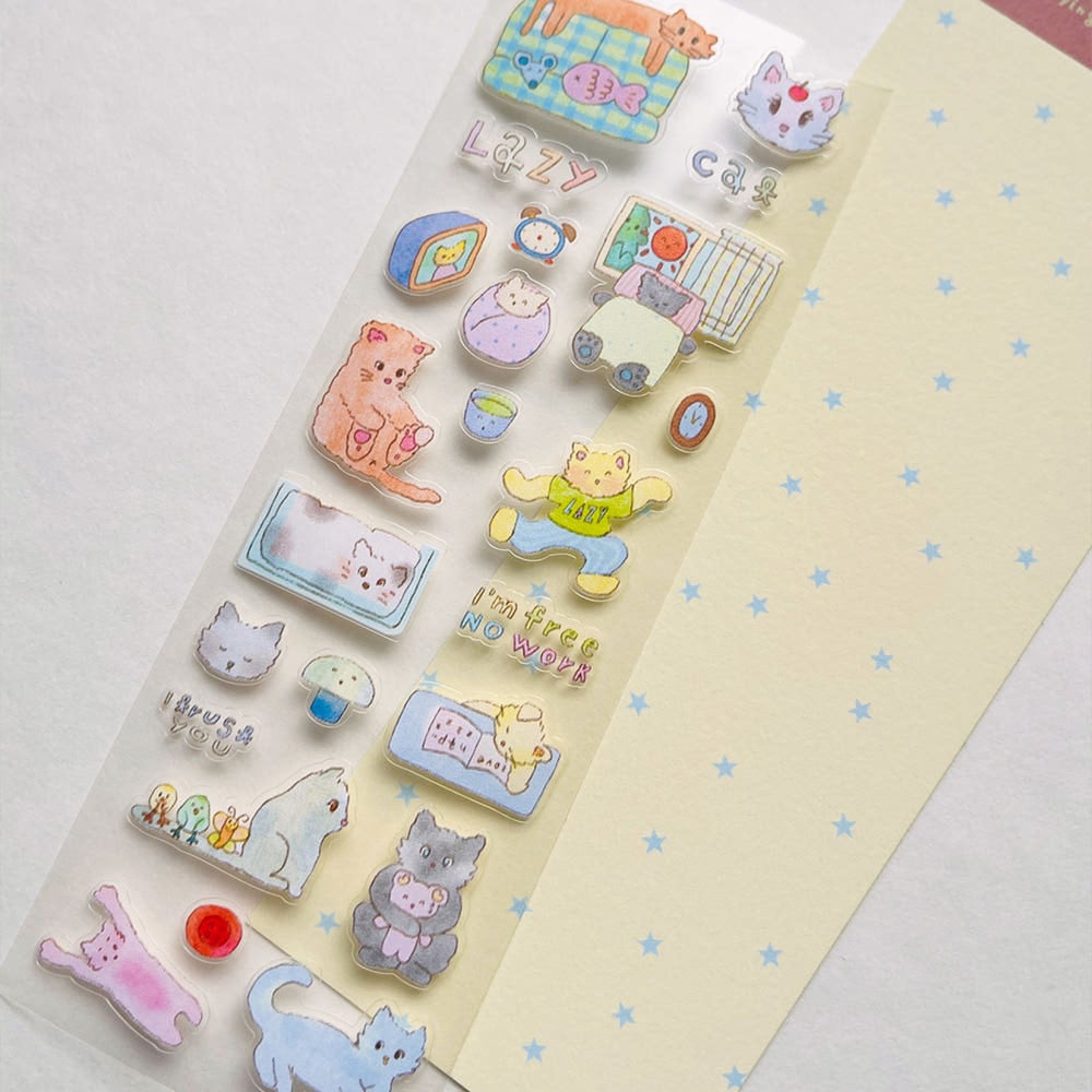 【greenyeveryday】シール 레이지캣 미니 lazy cat
