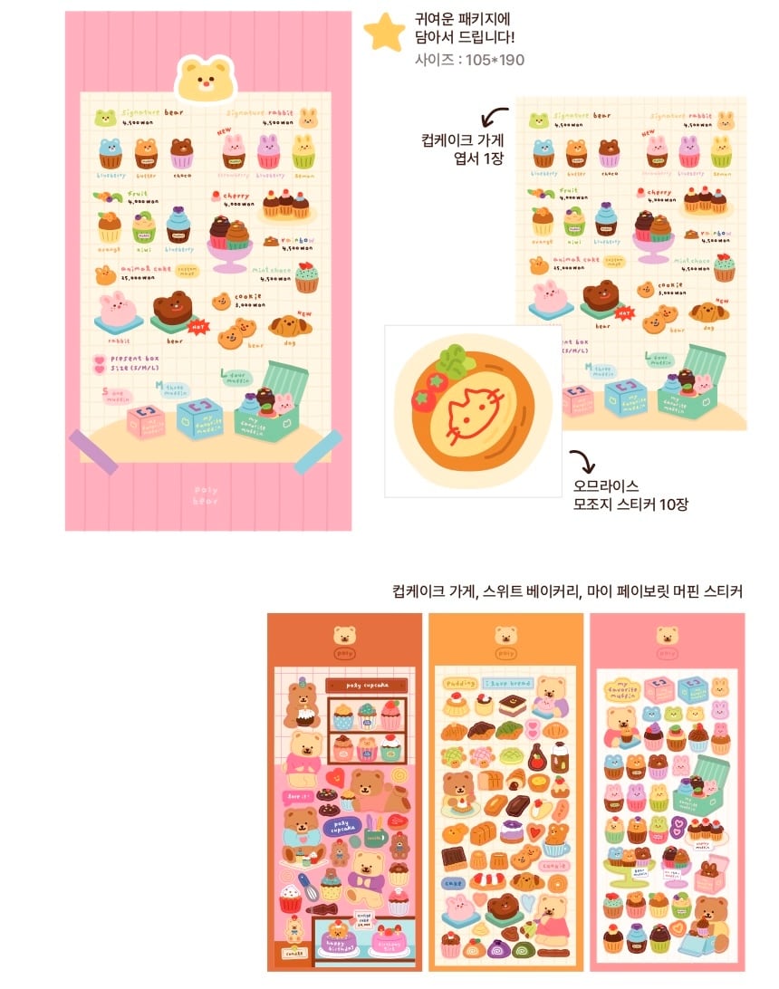 【poly bear】シール・メモ・ポストカード セット 스위트 베이커리팩