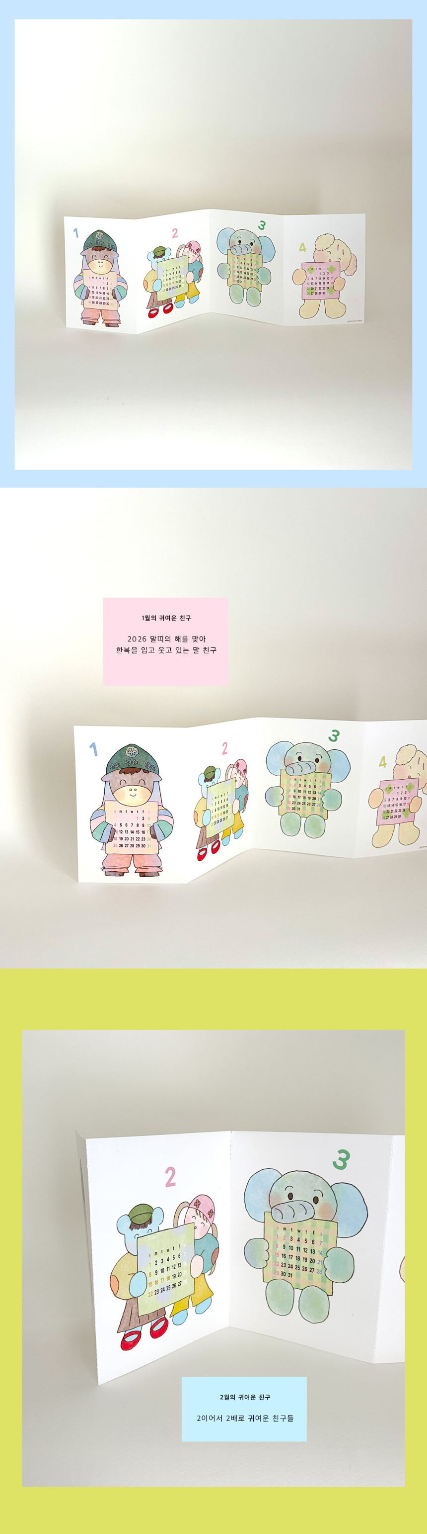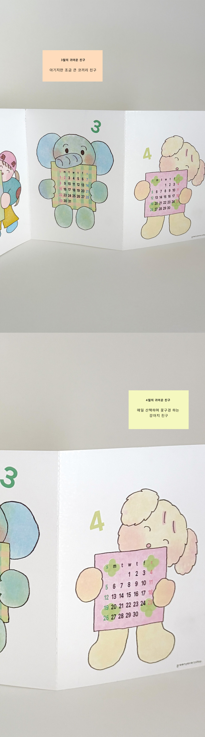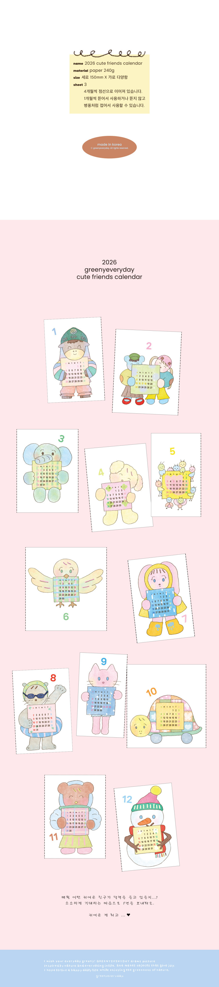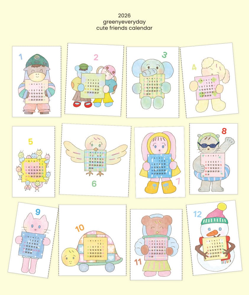 【greenyeveryday】2026 ポストカード カレンダー cute friends calendar