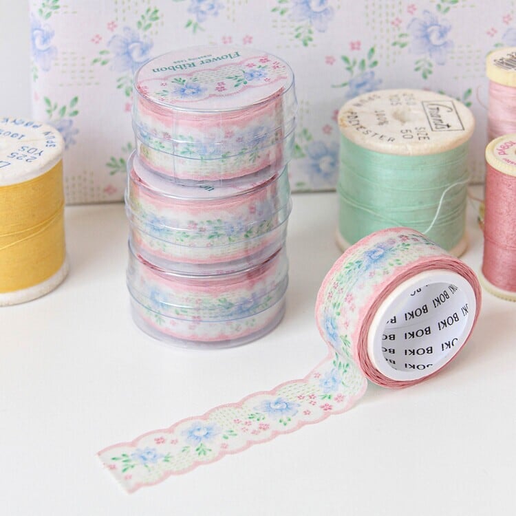 【BOKI】マスキングテープ ダイカット Flower Ribbon Die-cut Masking Tape [Blue Peony]