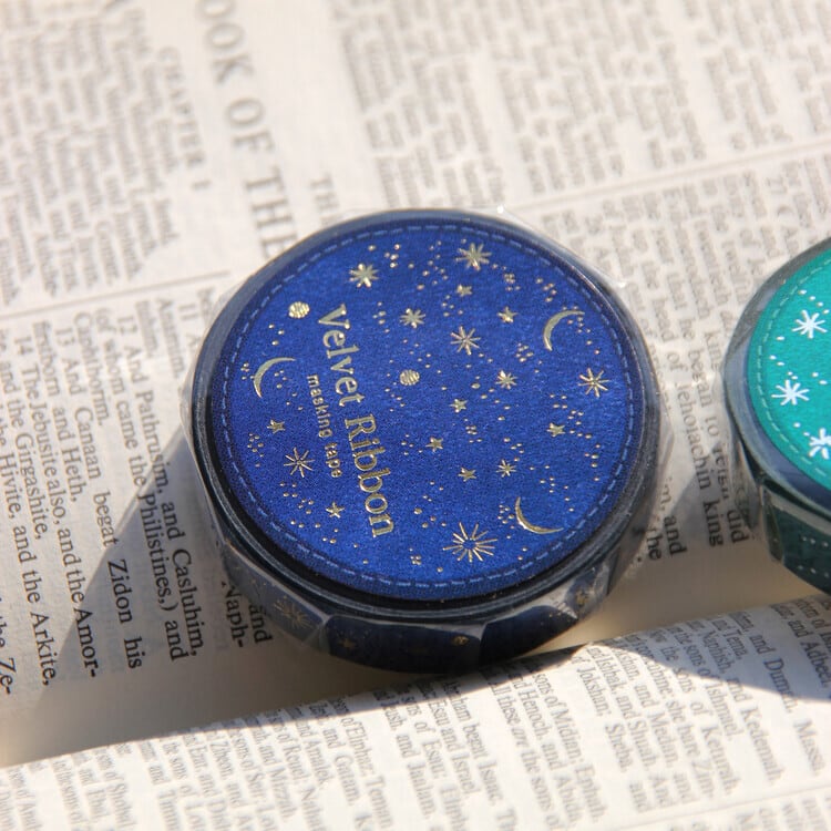 【BOKI】マスキングテープ Velvet Ribbon Blue Shining Gold Foil Masking Tape