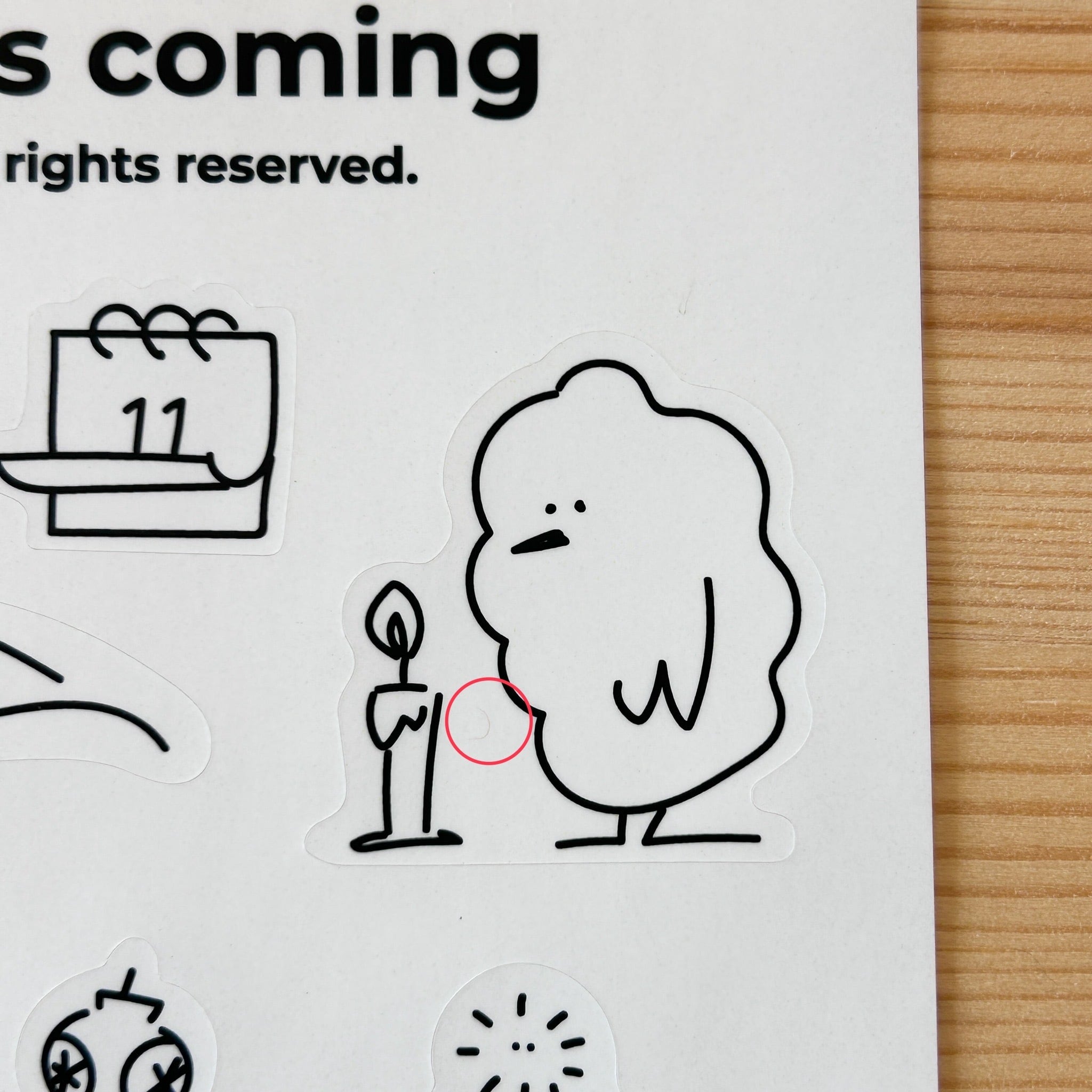 小さなほこり”somsom”と小さな鳥”pompom”のクリスマスステッカーです。