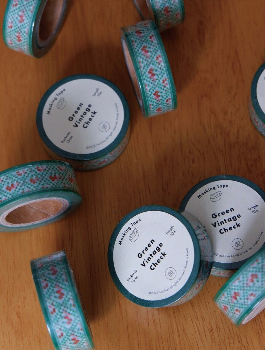 再入荷!【fruit fries】マスキングテープ Green Vintage Check